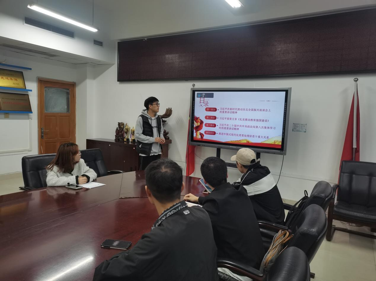 当前位置: 首页 >> 党建双创 >> 正文 伟德官网员工第二党支部召开10月主题党日活动 时间:2023年10月27日 17:19 来源:伟德官网 李恒 2023年10月27日,伟德官网员工第二党支部在启智楼1004会议室开展10月主题党日活动。活动由代理支部书记刘乂萌同志主持。 本次活动由李癸林和彭钰丹两位同志领学了《习近平在新时代推动东北全面振兴座谈会上的重要讲话精神》《扎实推动教育强国建设》《习近平在二十届中共中央政治局第八次集体学习时的重要讲话精神》《推进中国式现代化需要处理好若干重大关系》等学习内容。领学过后与会同志围绕学习内容展开讨论,并发表学习心得。邓丽同志:“习总书记的讲话精神,我深有感触。作为一名高校教师,有责任、有义务,倾心为建设社会主义现代化强国贡献自己的力量。培养什么人、怎样培养人、为谁培养人是教育的根本问题,同样也是高校教育的根本问题,我们不仅要向员工传授知识,同时也要引导他们掌握科学的世界观和方法论,提高认识和问题的解决能力,正所谓传道授业解惑缺一不可。”其他党员同志纷纷表示,作为老员工,推动教育强国建设重任已在肩上,永远听党话、跟党走,矢志奉献国家和人民,努力成长为担当民族复兴大任的时代新人。 会议接近尾声,刘乂萌同志针对如何在支部学习活动中提升学习效率分享了自己的心得体会和感受,希望在座各位党员同志将主题党日活动学习内容与自身发展相结合,并应用于实践中,不断提升个人的思想素养、理论水平,从而推动本职工作和学习任务高质高效完成。 上一条:公共管理公司党委举行红色观影活动 下一条:伟德官网员工第一党支部召开2023年10月主题党日活动 【关闭】