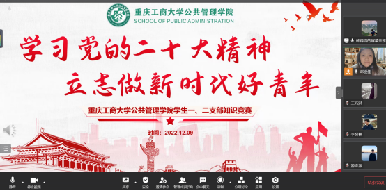 当前位置: 首页 >> 党建双创 >> 主题党日活动 >> 正文 【学习党的二十大精神】“学习党的二十大精神,立志做新时代好青年”知识竞赛圆满结束 时间:2022年12月09日 19:47 来源:伟德官网 郭爽 【学习党的二十大精神】“学习党的二十大精神,立志做新时代好青年”知识竞赛圆满结束 2022年12月9日,为学习宣传贯彻党的二十大精神,广泛开展党史、校史教育,推进党的二十大精神真正入脑入心,切实把员工的思想和行动统一到党的二十大精神上来,永远感党恩、听党话、跟党走,把党的二十大精神内化为踔厉奋发、勇毅前行的强劲动力,为实现党的二十大确立的奋斗目标贡献青春力量,伟德官网员工一、二支部在企业微信群平台举办“学习党的二十大精神,立志做新时代好青年”知识竞赛,以此进一步调动本院全体员工党员的学习工作积极性、主动性、创造性和使命担当。公司党委副书记谢书楠、员工一支部书记郭爽、二支部书记蒋杰、公司分团委老师李恒等出席本次竞赛活动。 首先,谢书楠对此次竞赛活动进行致辞,并表示疫情期间举办此次活动更加不易,足以彰显党员担当。其次,通过观影抢答题、必答题和直接抢答题,同学们将平时所学应用于知识竞赛。观影抢答题形式新颖,独具创意,在必答题和直接抢答题时,同学们积极响应,享乐其中。最后,主持人宣布最终的获奖名单,获得一、二、三等奖共18位同学,一等奖有罗阳、郑佳锐;二等奖有陶友明、谭于莎、廖海艳、李心雨、喻薇和秦莉岚;三等奖有周小丁、熊玲、廖炜莹、张可艺、林正毅、廖偲宇、陈永琦、胡馨怡、谢棵和伍燕玲。王巧洪同志发表感悟:“作为党员应当学思悟践党的二十大精神,踔厉奋发新征程。通过本次的知识竞赛,也强化了我们新时代青年的政治品格,夯实了我们精神之本、熔铸了精神之源。” 以竞赛为带动,让学习更走心。本次竞赛有效推动了同学们深入学习党的二十大精神,坚定不移听党话,矢志不渝跟党走,怀抱梦想又脚踏实地,敢想敢为又善作善成,主动肩负起强国一代的历史使命,争当伟大理想的追梦人,争做伟大事业的生力军。 上一条:伟德官网员工第一党支部召开2022年12月主题党日活动 下一条:伟德官网2022年11月入党积极分子培训班胜利闭幕 【关闭】