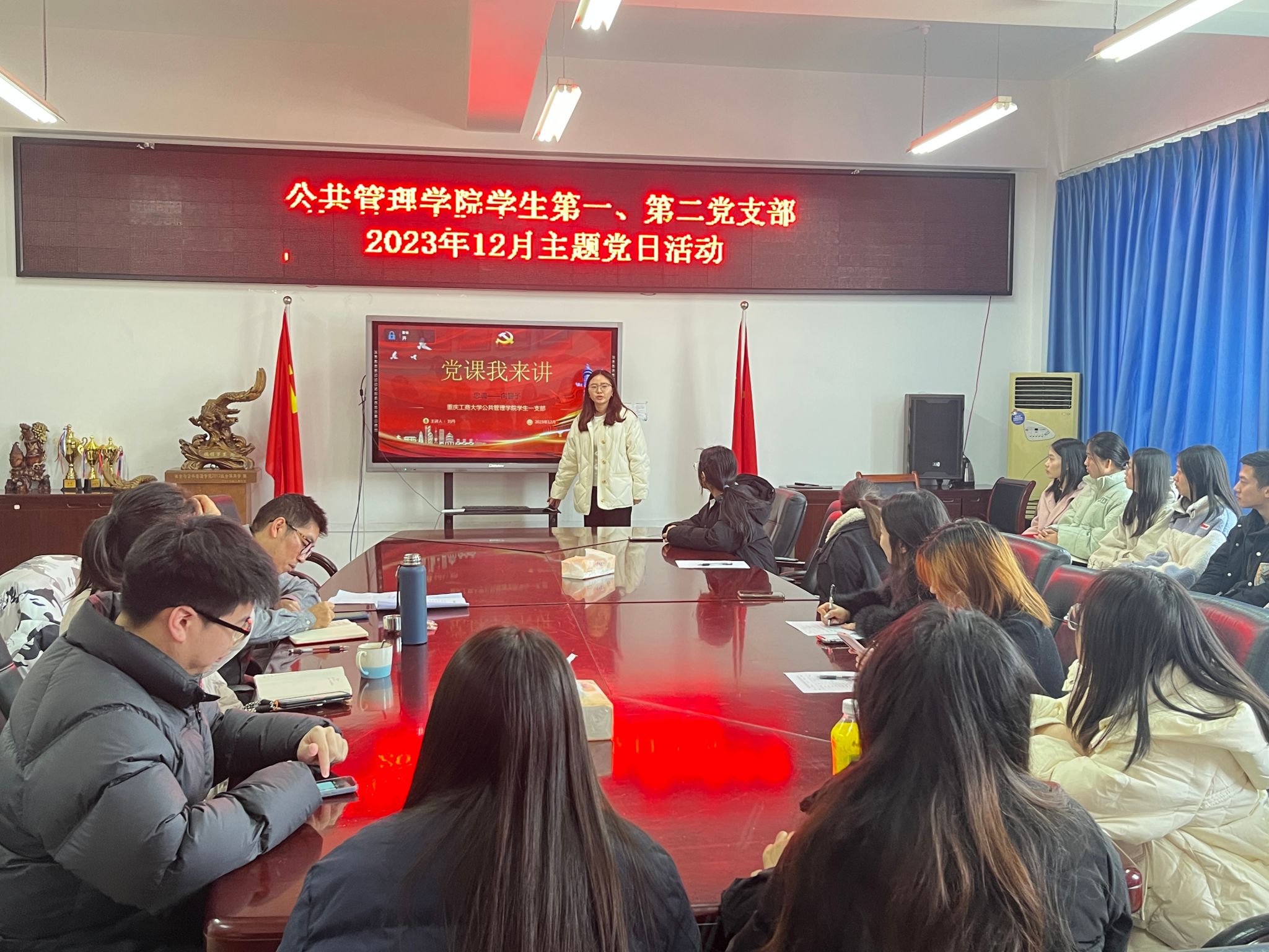 当前位置: 首页 >> 党建双创 >> 主题党日活动 >> 正文 伟德官网员工第一、第二党支部召开2023年12月主题党日活动 时间:2023年12月26日 18:21 来源:伟德官网 郭爽 为促进支部之间互相交流与学习, 12月26日,公司员工第一、第二党支部在启智楼81004会议室联合开展了一次主题党日活动。员工一、二支部的全体党员参加了本次活动。会议由员工第一党支部书记郭爽主持。 会议伊始,郭爽领学“关于落实《关于深入学习贯彻习近平总书记关于党的建设的重要思想 推进组织工作现代化的实施意见》的具体措施”,并主讲了以“坚守廉洁自律,争当优秀党员”为题的党课,他强调廉洁是每位党员同志必须具备的道德品质,尤其是员工干部,要牢记为同学服务的使命,戒骄戒躁、脚踏实地。员工第二党支部书记蒋杰以“弘扬宪法精神,树立宪法权威”为题讲述了党课,她强调作为党员同志,我们不仅要自己学习好宪法精神,还要向其他群众弘扬宪法精神,养成遵纪守法的习惯。 接着,周琪、秦秋璐分别领学了《习近平致首届“一带一路”科技交流大会贺信精神》《习近平就坚持和发展新时代“枫桥经验”作出系列重要指示精神》《习近平在北京河北考察灾后恢复重建工作时的重要讲话精神》《习近平对山西吕梁市永聚煤矿一办公楼火灾事故作出的重要指示精神》等学习内容。 随后,郑佳锐和刘丹分别进行了党史分享。郑佳锐分享了革命伟人毛泽东同志的事迹,他领导中国人民彻底改变自己命运和国家面貌,将自己的一生献给党和人民;刘丹分享了巾帼英雄向警予同志的事迹,面对敌人的诱惑和严刑拷打,她大义凛然、视死如归,表现了共产党员坚贞不屈的崇高气节。与会同志认真聆听,深受感动。 最后,郭爽作总结发言,通过学习革命伟人和优秀党员的先进事迹,希望全体党员不忘初心,牢记党的宗旨,发挥好党员的先锋模范作用,争做一名优秀党员。 上一条:伟德官网员工第一、第二党支部参观重庆抗战遗址博物馆 下一条:伟德官网员工第一党支部召开2023年11月党员大会暨主题党日活动 【关闭】