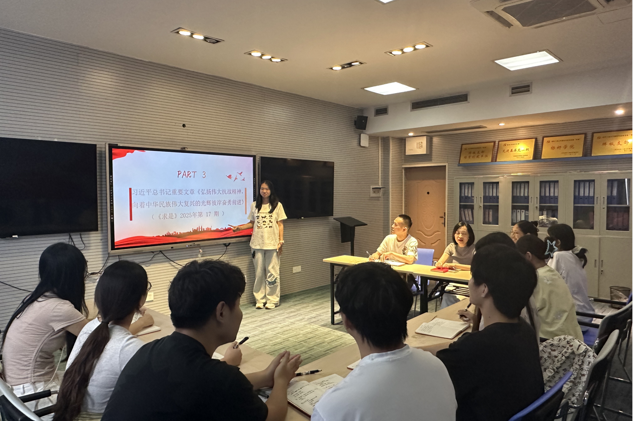 当前位置: 首页 >> 党建双创 >> 主题党日活动 >> 正文 伟德官网员工第一党支部9月主题党日活动 时间:2025年09月22日 15:05 来源:伟德官网 杨阳 9月19日下午1:30,伟德官网员工第一党支部于81002教室召开9月主题党日活动,支部书记杨阳主持会议,支部全体党员参加。 会议伊始,杨阳同志组织党员系统学习《习近平谈治国理政》第五卷、中央城市工作会议精神等重要内容,强调“先学思想、再做工作”,以党的创新理论武装头脑、指导实践。同时,要求全体党员认真研读并集中讨论每月组织生活学习材料,推动支部工作更加规范、高效。 随后,由胡岚渝、陈馨彤两位同志分别领学习近平总书记关于落实中央八项规定精神的重要指示精神,以及刊载于《求是》2025年第17期的《弘扬伟大抗战精神,向着中华民族伟大复兴的光辉彼岸奋勇前进》等内容。与会同志一致表示,要把作风建设作为长期课题抓紧抓实,铭记抗战历史、赓续精神血脉,在新时代新征程上更好担当作为。党史小故事环节中,谭雨婷同志分享了李登月烈士的英勇事迹,生动展现了共产党人坚定信仰与无畏担当。 最后,杨阳同志对本次会议进行总结:一要持续深化学,在集中学习之外拓展原文原著学习的广度与深度;二要突出重点学,紧扣八项规定精神、人民城市等主题,结合专业学习与岗位实践深入研讨;三要注重转化学,把学习成果落实到个人学习、社会实践与日常作风中,以实际行动发挥党员先锋模范作用。 上一条:伟德官网员工第二党支部召开2025年9月主题党日活动 下一条:党委常委、副董事长田双全调研指导伟德官网全面从严治党工作 【关闭】
