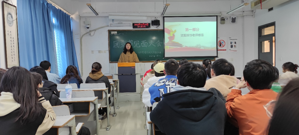 当前位置: 首页 >> 联系我们 >> 学团快讯 >> 正文 【公共管理公司党服】“新学期团支书见面大会”圆满结束 时间:2022年03月04日 17:19 来源:伟德官网 李恒 2022年3月3日,公共管理公司党员服务站新学期团支书见面大会于伟德官网博智楼407如期举行并圆满结束。本次见面大会旨在通过各班级团支书,让同学们更加了解党服的同时搭建起一架与入党积极分子和预备党员之间交流沟通的桥梁。 大会第一部分,由党服指导老师讲话。首先由站长廖偲宇说明本次见面大会的目的和期望,并介绍本次大会的大致流程。其次,由党服前指导老师郭爽老师进行讲话。郭爽老师对党服以往的工作进行大致总结并对大家的工作进行了肯定。与此同时,郭爽老师也希望大家继续秉持党的宗旨,将党服发展的越来越好。之后,党服现任指导老师李恒老师进行了自我介绍,并表示在今后将与大家共同成长,将党服不断做大做强。 大会第二部分,进行党服概况介绍及党服相关考核要求讲解。首先,新闻部干事彭诗懿对上学期党服开展的活动进行了视频总结,并对党服的指导老师、站长团及其分管部门、各部门工作内容进行简单介绍。其次,由站长团进行活动要求讲解及相关工作介绍。宣传部部长李新玥对上学期活动过程中出现的普遍性问题进行统一回复,并对相关要求做出说明。办公室部长邓晓燕对积极分子的发展和转正的要求进行说明,指出当前转正越来越严格,党服后续也会加大考核力度,希望大家能以更高的标准来要求自己。组织部部长吴仕龙向大家介绍了党服的规章制度、活动文件,并着重介绍了学习强国考核标准。 大会第三部分,入党流程介绍及站长寄语。首先,办公室干事王茜向大家介绍了入党流程、入党条件以及党员标准,让大家清楚入党流程的同时更坚定了大家的理想信念。然后,副站长张可艺对入党流程进行了补充说明,更加详细的介绍了入党的具体流程。其次,副站长林正毅对过去一学期里大家的各项工作进行了充分肯定,并希望在接下来的一学期里,大家能够继续愉快的合作。最后,站长廖偲宇对本次大会进行总结,希望大家不忘初心,砥砺前行。 本次见面大会,通过系统的向大家介绍党服活动要求及入党流程等内容,旨在让各位同学更加深入的了解党服,在今后以更高的热情参与到各项活动中去。同时,本次见面大会的顺利召开,也为本学期接下来的活动打下坚实基础,党服各成员也将有序展开各项工作,将党服建设的越来越好! 上一条:【公共管理公司党服】 “镌刻拼搏印记,绽放青春风采”冬季奥运会主题手抄报制作活动闭幕式圆满结束 下一条:关注员工内驱力----员工思想动态地图工作模式探讨 【关闭】