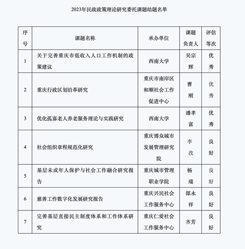 当前位置: 首页 >> 公司新闻 >> 正文 重庆市民政局委托伟德官网与博众研究院共同研究课题获评“良好” 时间:2023年09月26日 17:21 来源:伟德官网 博众城市发展管理研究院与公司已有多年的合作历史,双方不仅在教学上共建研究生联合培训基地,科研方面近年来在养老保障、物业企业发展养老服务、人力资源评估、社会组织发展等方面深度合作,在民生保障和服务领域方面取得重要成果,推动区域民生建设成效显著。 近日,重庆市民政局发布2023年民政政策理论研究委托课题及合作研究课题结题公告,由公司经理李孜教授领衔团队和博众研究院理论研究基地共同研究课题《社会组织章程规范化研究》被评估为良好予以结题,这是公司与博众研究院多年产学研合作取得又一成果。在该研究中,课题组从社会组织章程建设现状、现实问题以及科学路径等方面展开研究,对社会组织规范化运行提出了切实可行的建议。 上一条:用心育人,温情到寝 ——公司领导带队深入员工公寓社区 下一条:李孜经理携公司师生团队参加2023中国城市管理发展年会暨第五届全国老员工城市管理竞赛决赛 【关闭】