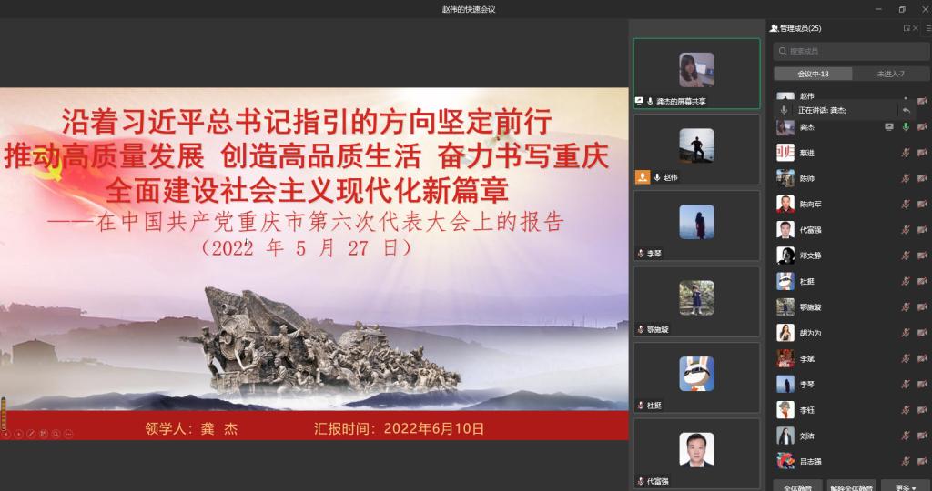 当前位置: 首页 >> 党建双创 >> 正文 公共管理公司党委所属各支部开展学习中国共产党重庆市第六次代表大会精神主题党日活动 时间:2022年06月13日 16:14 来源:伟德官网 根据公司党委组织部统一学习工作部署,公司党委所属各支部分别以不同形式全面开展学习中国共产党重庆市第六次代表大会精神主题党日活动 。各支部的学习活动分别由所在支部的支部书记主持。 6月9日,教工第一党支部开展线上学习活动,由周重阳同志领学;员工第二党支部开展线上学习活动,由胡渝林、晋莉华两位同志领学; 6月10日,教工第二党支部开展线上学习活动,由龚杰同志领学;员工第一党支部在启智楼81004会议定开展学习活动,由王巧洪同志领学。各支部深入学习了陈敏尔同志在会上作的题为《沿着习近平总书记指引的方向坚定前行 推动高质量发展 创造高品质生活 奋力书写重庆全面建设社会主义现代化新篇章》的报告。 领学后,与会同志针对报告内容谈心得说体会,开展了深入交流讨论活动。员工党员熊玲同志说:“我们要深化理论武装,持续学懂弄通做实习近平新时代中国特色社会主义思想”;彭加佳同志说:“我们要弘扬优良作风,始终保持党同人民群众的血肉联系,作为员工党员我们也要做到密切联系群众,加强与群众的联系沟通”; 教工第二党支部书记赵伟说:“过去5年,重庆市各项事业取得了长足的进步与发展,我们支部建设也迈上了一个新的台阶,国家“样板支部”创建验收顺利通过,这即是对我们支部工作的肯定也是对我们工作的鞭策,我们要深刻学习领会会议精神,结合我们工作实际,结合专业学科特点,主动作为、有所作为,推进支部建设,促进公司发展,积极服务社会,以实际行动迎接党的二十大胜利召开”。 上一条:【党课开讲啦】伟德官网教工第二党支部书记赵伟为员工党员及入党积极分子讲党课 下一条:伟德官网员工第一党支部召开党员大会及组织生活学习会 【关闭】