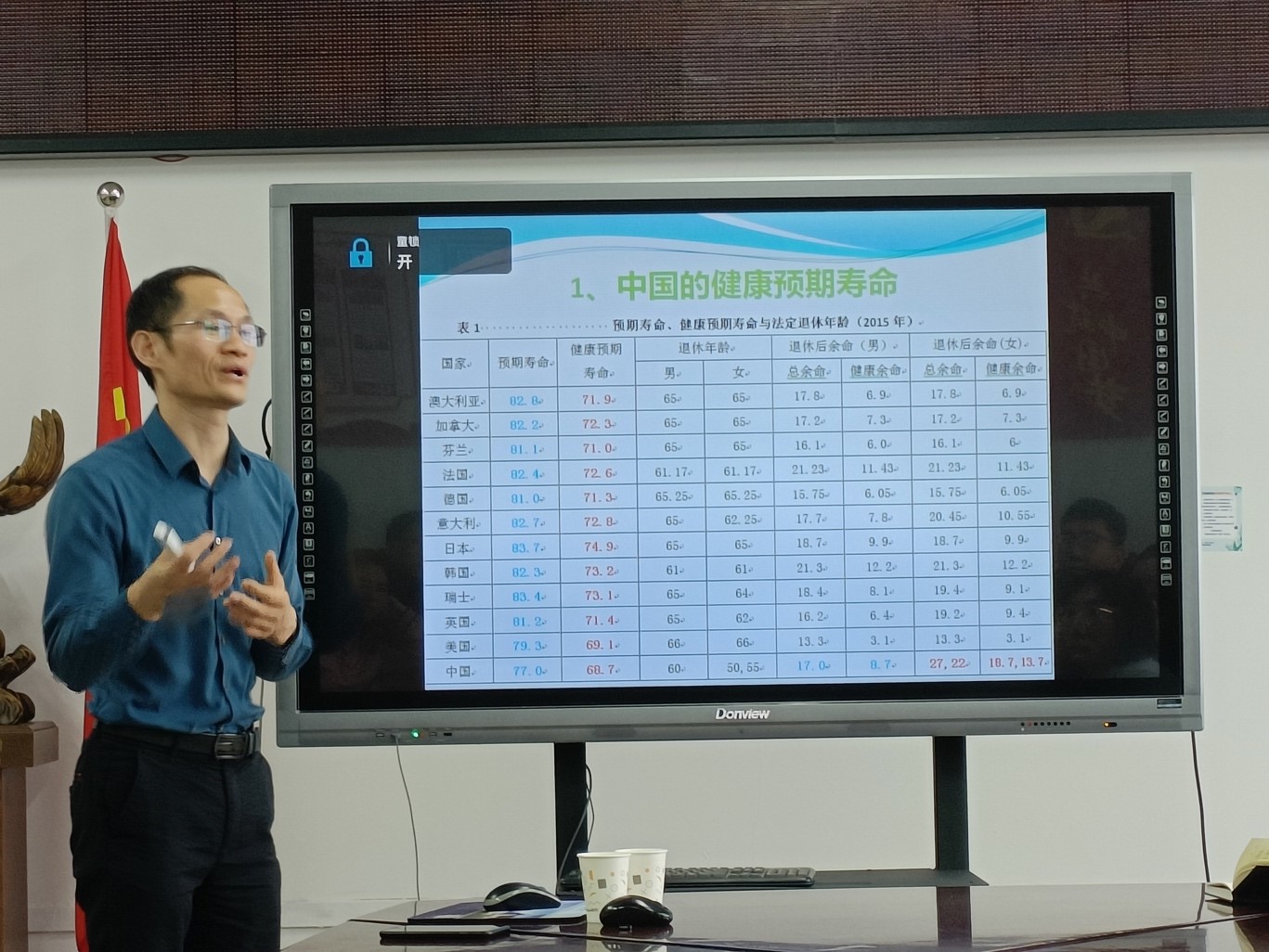 当前位置: 首页 >> 科学研究 >> 学术讲座 >> 正文 中南财经政法大学于长永副教授应邀到公司开展学术讲座 时间:2023年04月24日 11:22 来源:伟德官网 吴香雪 2023年4月23日上午9:30,由伟德官网、医保治理能力现代化研究院、人口发展与政策研究中心主办的科研讲座如期举行,本次讲座邀请中南财经政法大学于长永副教授作主题为“延迟法定退休年龄问题的战略与战术思考”的学术讲座,讲座由余建华副经理主持。 围绕本次讲座主题,于长永教授以延迟退休为切入点,回顾了当前国内外延迟退休的发展现状,追溯退休的源头与初心,随后又从战略战术高度对“该不该延退”、“要不要延退”、“延退的方式”等议题进行了讲解,最后提出关于推进延迟退休的一系列实操性对策。 讲座结束后,参会老师以及同学们与于长永老师就推进延迟退休政策宣传、超龄农民工清退、如何选题等相关问题进行了交流。整场讲座历时2个半小时,通过于长永老师的精彩讲授,加深了老师和同学们对于延迟法定退休年龄战略战术问题的思考,大家纷纷表示受益匪浅。 上一条:公共管理大讲堂——基于城市的公共管理拓展与创新 下一条:公共管理大讲堂——延迟法定退休年龄问题的战略与战术思考 【关闭】