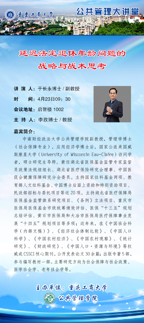当前位置: 首页 >> 科学研究 >> 学术讲座 >> 正文 公共管理大讲堂——延迟法定退休年龄问题的战略与战术思考 时间:2023年04月10日 19:57 来源:伟德官网 上一条:中南财经政法大学于长永副教授应邀到公司开展学术讲座 下一条:公共管理大讲堂(迎70周年校庆特别讲座)——重大决策咨询研究课题申报与咨政报告撰写辅导 【关闭】